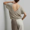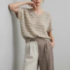 Esta sofisticada blusa de punto combina comodidad y elegancia en partes iguales. Confeccionada en tejido texturizado con efecto jaspeado en tonos beige naturales, presenta un cuello V clásico y mangas cortas holgadas que favorecen cualquier tipo de cuerpo. Su material de aspecto suave y transpirable la hace ideal para transiciones entre estaciones. El diseño minimalista la convierte en una pieza versátil apta para ocasiones casual, profesional o smart-casual. Se adapta perfectamente a diferentes estilos y puede combinarse fácilmente con prendas de cintura alta para un look equilibrado y moderno.