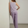 Blusa sin mangas de corte fluido en lavanda suave. Diseño minimalista con caída elegante, perfecta para looks sofisticados y versátiles.