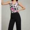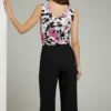 Esta blusa sin mangas presenta un atractivo estampado floral que combina tonos rosa vibrante, negro intenso y blanco crema. Confeccionada en un material ligero y fluido que proporciona comodidad y movimiento, cuenta con un escote en V pronunciado que aporta elegancia y feminidad. El diseño es versátil, ideal para combinar con pantalones negros para un look profesional o con prendas más casual. Sus características destacadas incluyen el patrón botánico audaz, el corte sin mangas que permite libertad de movimiento, y su capacidad de adaptarse tanto a ocasiones informales como a eventos semi-formales.