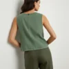 Blusa Sin Mangas Verde Salvia con Detalles Perforados