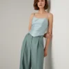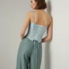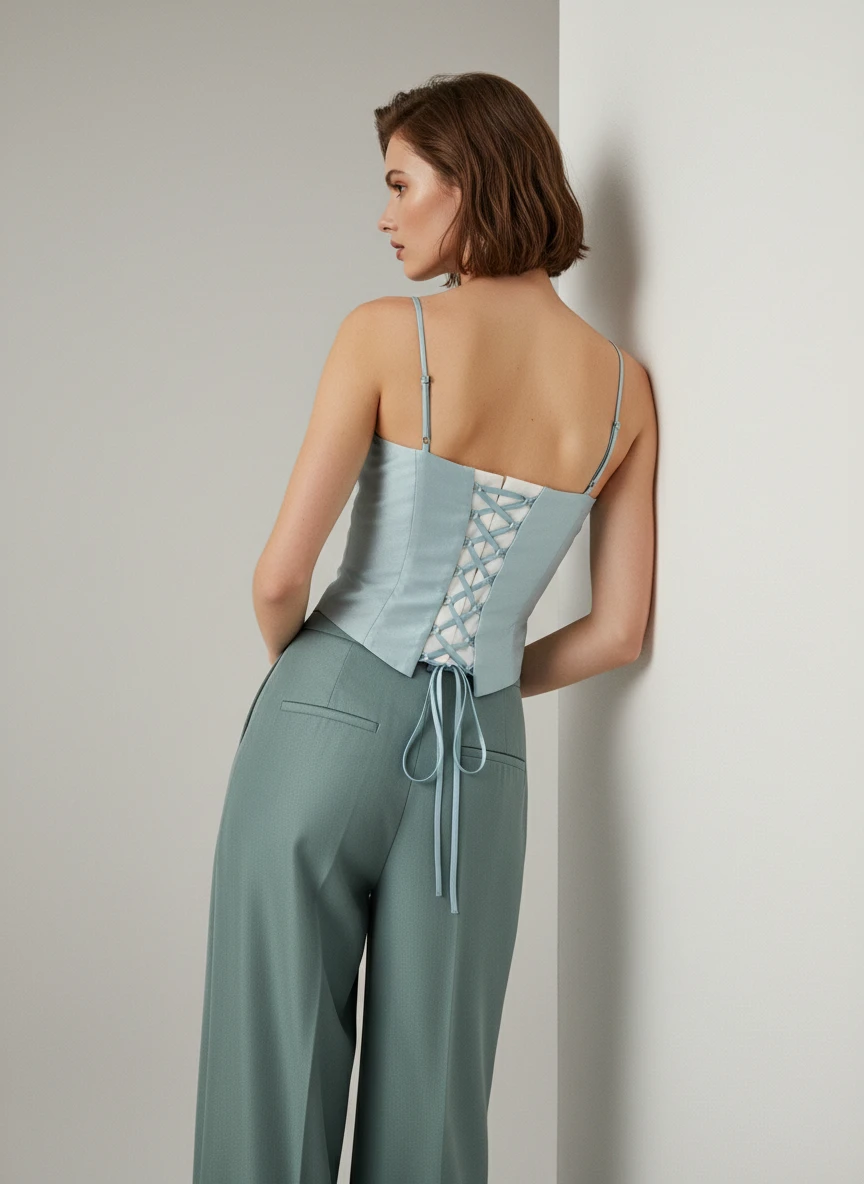 Esta exquisita camiseta de tirantes combina elegancia minimalista con un toque contemporáneo. Confeccionada en satén de alta calidad, la prenda presenta un suave brillo característico que realza su tonalidad azul cielo. El escote en forma de corazón y los tirantes finos crean una silueta delicada y favorecedora. Con un ajuste ceñido que sigue la línea del cuerpo, destaca por su simplicidad refinada. Perfecta para combinar con pantalones tailored, faldas o jeans, es ideal para eventos casuales, cenas y ocasiones donde se busca una estética sofisticada sin excesos. Su versatilidad la convierte en una prenda imprescindible en el armario moderno.