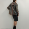 Este impermeable presenta un patrón geométrico en tonos grises, marrones beige y detalles en rojo coral. El cuello con capucha . Complementado un look urbano perfecto para oficina, eventos nocturnos u ocasiones semi-formales.