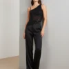 Este top asimétrico es una pieza statement ideal para ocasiones especiales. Confeccionado en tela negra con acabado mate, la prenda destaca por su diseño asimétrico de una sola manga y escote diagonal. La parte superior está completamente cubierta de lentejuelas plateadas que crean un efecto deslumbrante, mientras que la sección inferior presenta una textura translúcida combinada con más detalles brillantes. Perfecto para cócteles, galas y eventos nocturnos, este top combina elegancia moderna con un toque de glamour. Su corte estruturado y detalles sofisticados lo convierten en una opción versátil para looks formales.