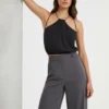 Este top halter negro destaca por su diseño minimalista y elegante, perfecto para crear combinaciones versátiles. Confeccionado en tela fluida de aspecto suave, ofrece comodidad y movimiento. El cuello cuenta con una cadena plateada distintiva que añade un toque sofisticado y moderno. Su cintura ajustada define la silueta, mientras que el corte bloused proporciona un efecto relajado. Ideal para looks de día casual, noches salidas o eventos semi-formales. Las tiras ajustables del halter permiten un ajuste personalizado. Versátil y atemporal, combina perfectamente con pantalones, faldas o shorts.