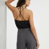 Top Halter Negro Elegante con Cadena Plateada